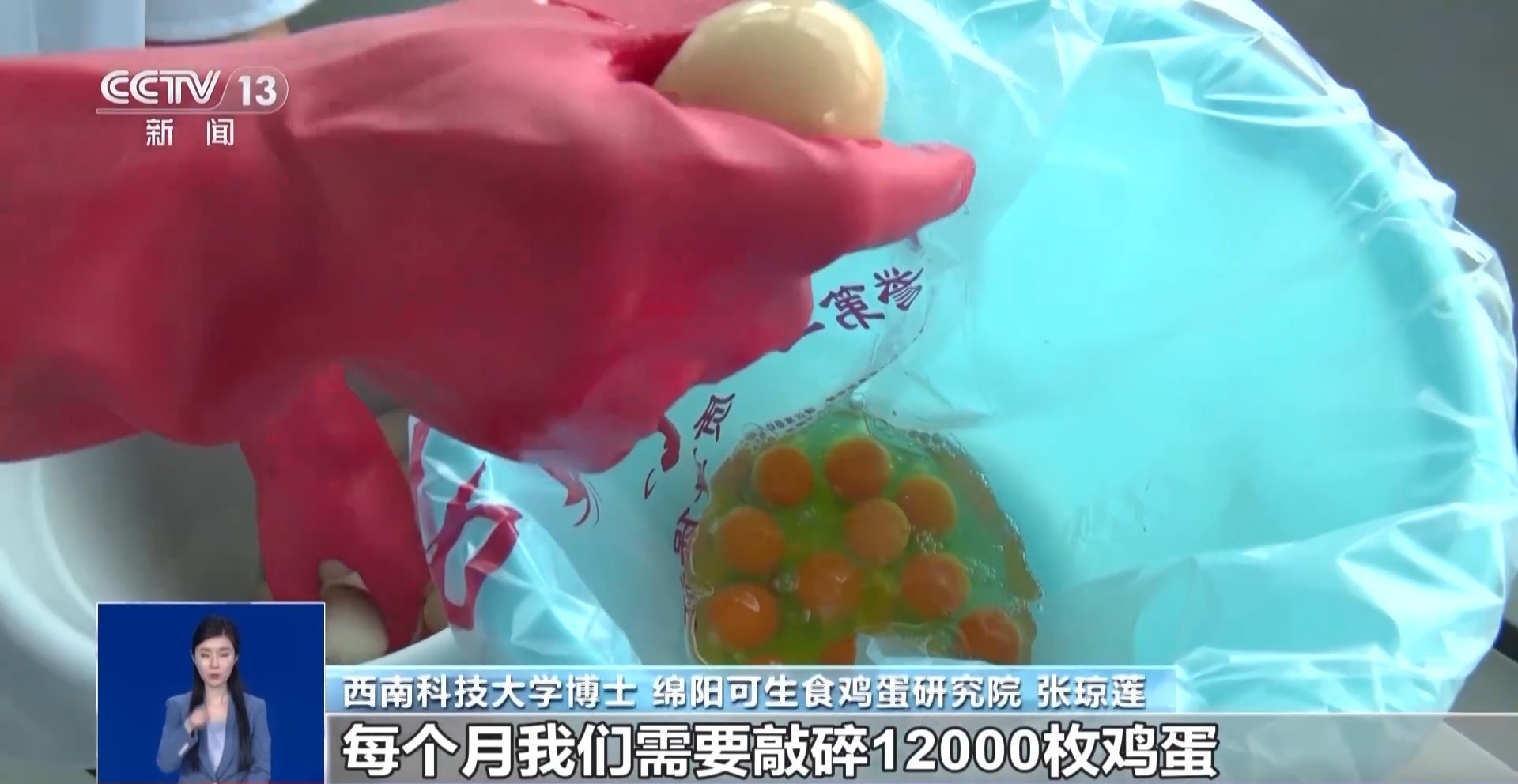 西南科技大学博士、可生食鸡蛋研究院 张琼莲:在这个基地,我们每个月需要敲碎12000枚鸡蛋,来检测确认鸡蛋内部是否含有沙门氏菌。