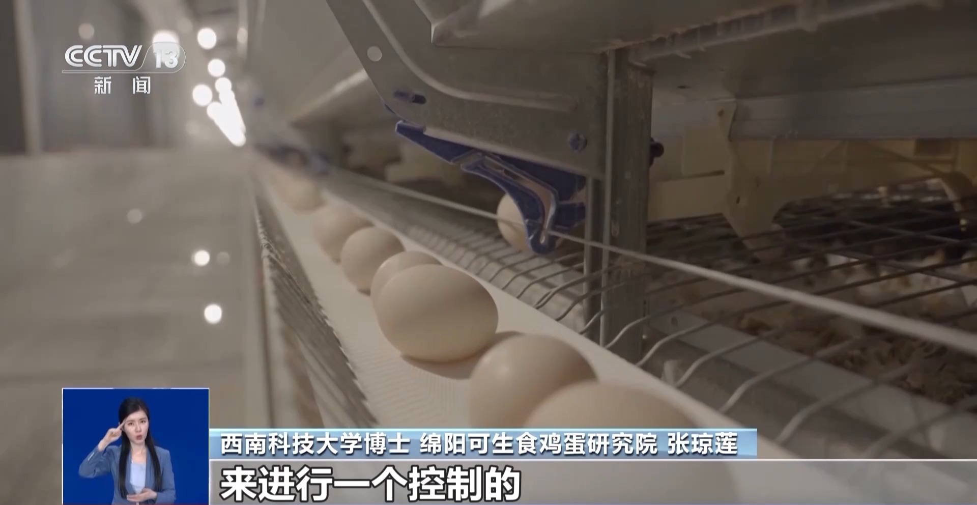 西南科技大学博士 绵阳可生食鸡蛋研究院 张琼莲:它生活的环境温度、空气质量,包括每天的采食和饮水,都是通过智能化的设备进行控制的,避免外源带入有害的微生物,包括沙门氏菌等。