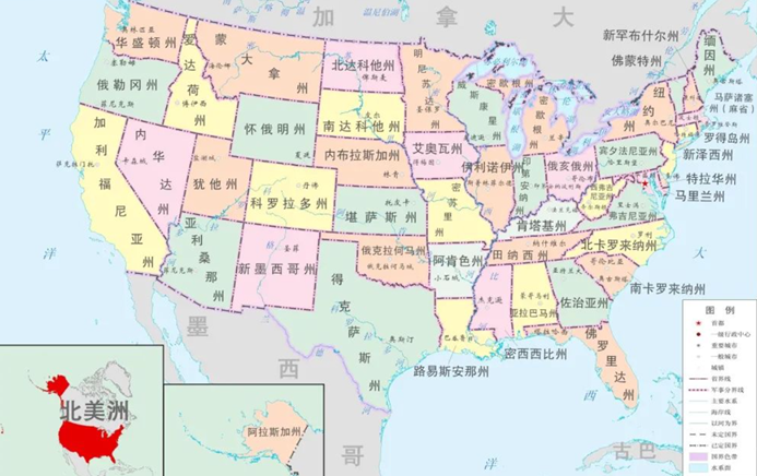 看过老美地图的都知道,老美地图基本是按照经纬线直直地划分行政区域,这在盛世没啥问题。