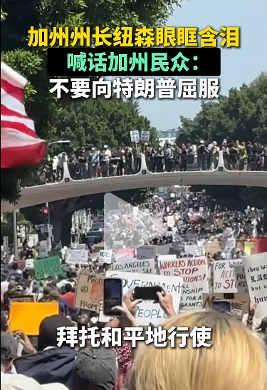 纽森也发表讲话不要向特朗普屈服,并请求民众和平地使用权利。